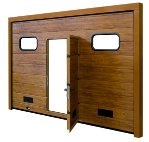 Novità: porta sezionale preassemblata. Questa porta è stata studiata per facilitare il montaggio, ridurre gli spazi ed adeguarla alle più severe norme uni e 1) La porta viene fornita assemblata come una basculante, è evidente che il tempo di montaggio viene notevolmente ridotto al solo fissaggio delle guide “tre viti per parte”. 2) Non necessita di regolazioni in quanto le molle sono già caricate e la porta viene sempre collaudata prima della spedizione. 3) Per motivi di peso o grandezze può comunque essere inviata con il telaio assemblato e i pannelli preforati a parte. 4) Per permettere la spedizione tramite corriere, il telaio con le molle premontate sulle spalle e il traverso superiore e inferiore possono essere inviati smontati e quindi con facilità poi assemblati sul posto, con i relativi pannelli sempre preforati a parte. 5) Particolarità di questa porta è che consente una vasta scelta di colori e di effetti legno su superfici piane, dogate, a doghe strette, doghe larghe e a cassettoni per poter essere adattate a qualsiasi ambiente classico moderno o antico, a richiesta anche nei colori RAL.